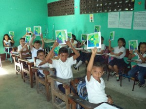 Hemos recibido también hace unos días cartas de agradecimiento de los profesores y dibujos y escritos de los niños de todos los cursos. Estos dibujos y escritos los expondremos en los próximos eventos que celebremos.